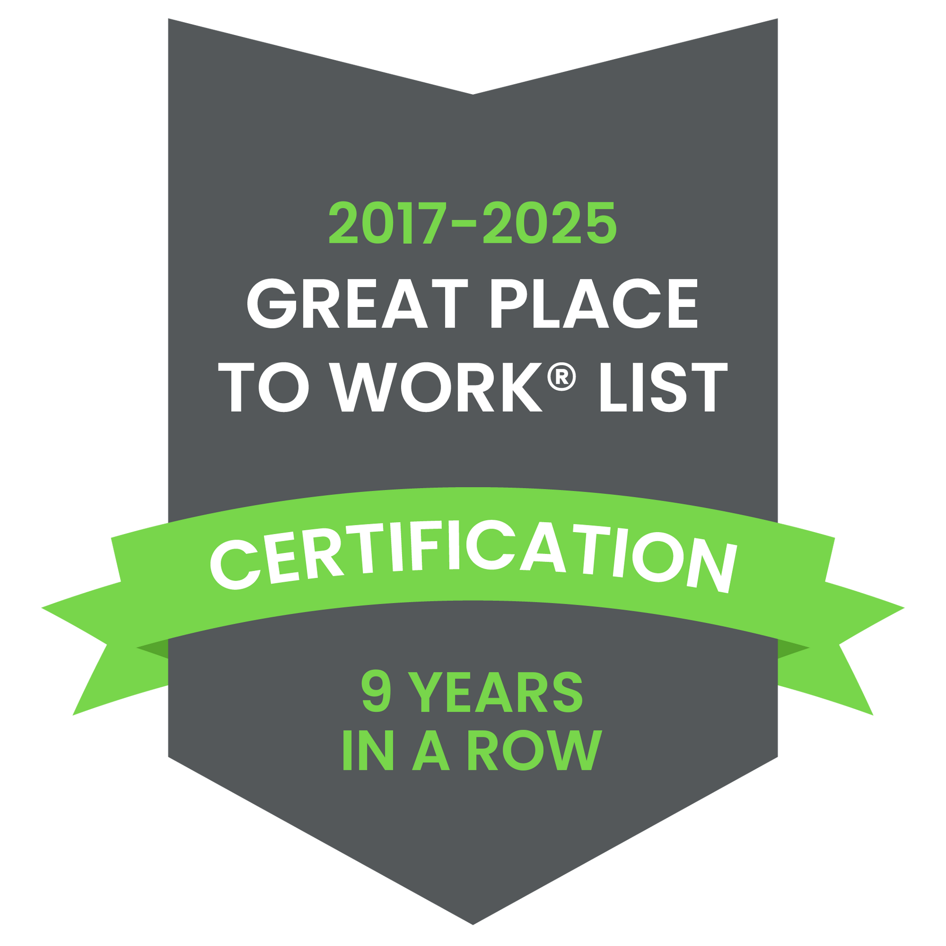 And you'll be part of a company that has been certified as a Great Place to Work® for eight consecutive years.
